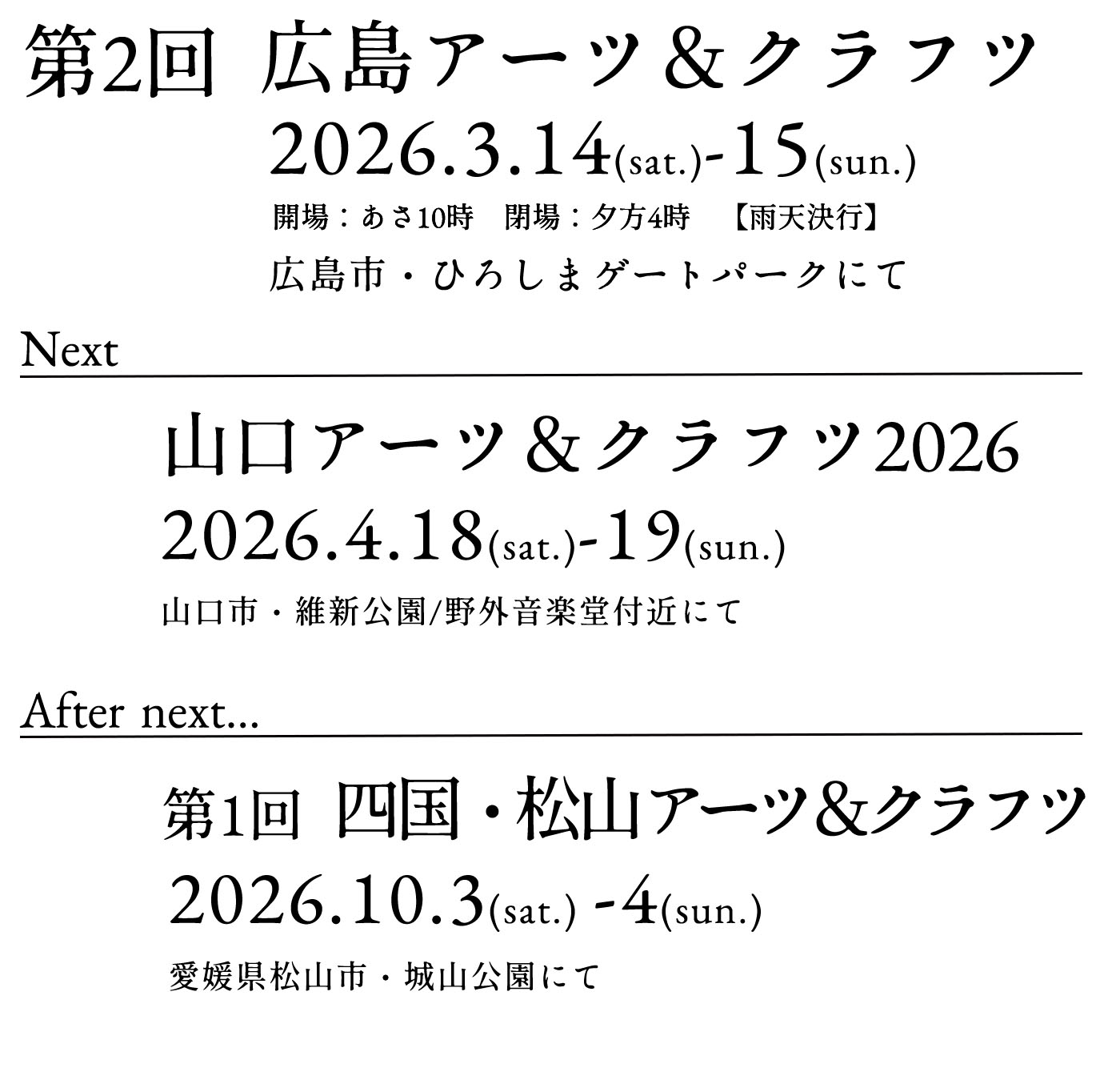 【広島アーツ&クラフツ2026】募集終了いたしました。